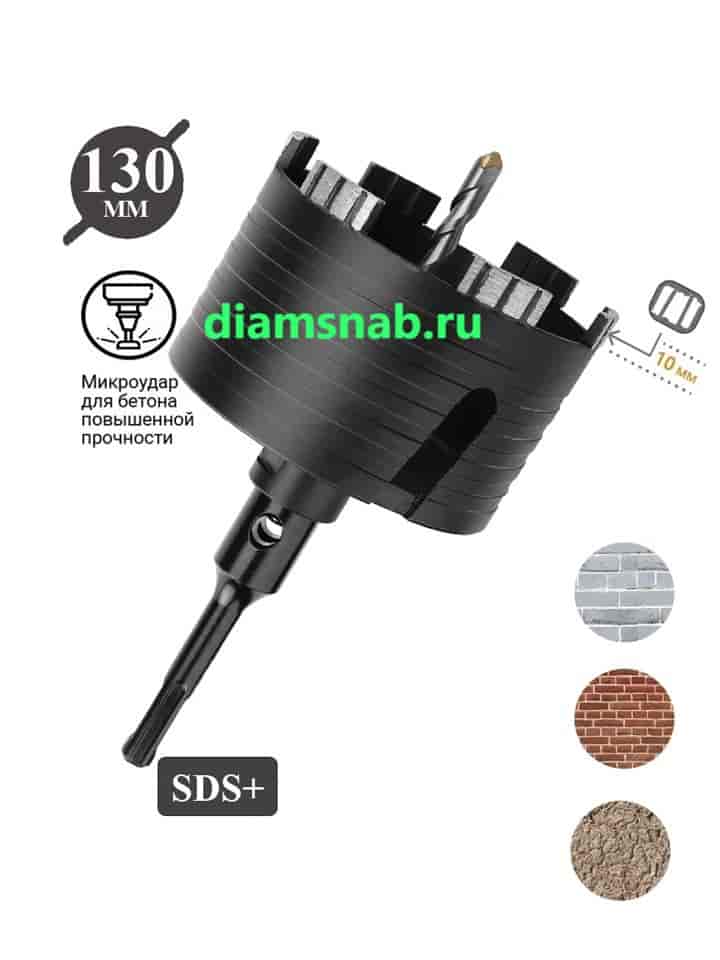Алмазная безударная коронка для перфоратора SDS-Plus 120 мм имеет стальной корпус цилиндрической формы с напаянными алмазными сегментами в режущей части. Поставляется в сборе с острым центровочным твердосплавным сверлом, наделенным переходником с М16 на SDS-plus. Алмазная коронка по керамограниту 120мм предназначена для безударного сверления твердых материалов без использования охлаждающей жидкости, таких как железобетон, армированный бетон, керамогранит, кирпич, клинкер, шамот, бордюрный камень, на выходе получаем ровное отверстие без сколов со строго выдержанным размером благодаря безударному сверлению и точно в намеченном месте благодаря наличию центрирующего твердосплавного сверла. Алмазная коронка по железобетону 120 мм рекомендуется для выполнения глухих и сквозных отверстий в кирпиче, бетоне (в том числе и армированном), керамограните и железобетоне. Имеет высокую производительность и высокую скорость сверления, а самое главное можно работать "на сухую" - без применения охлаждающей жидкости, что нашло самое широкое применение не только в гражданском, но и промышленном строительстве. Внимание, имеется возможность приобрести удлинители для алмазных коронок по бетону на перфоратор М16 / sds plus и М16 / sds max длиной 400 600 800 1000 мм в сборе с центровочным сверлом, что является большим подспорьем при работе в труднодоступных местах и там где глубины коронки просто не хватает, подходят для перфораторов SDS PLUS и SDS MAX, что также является немаловажным.